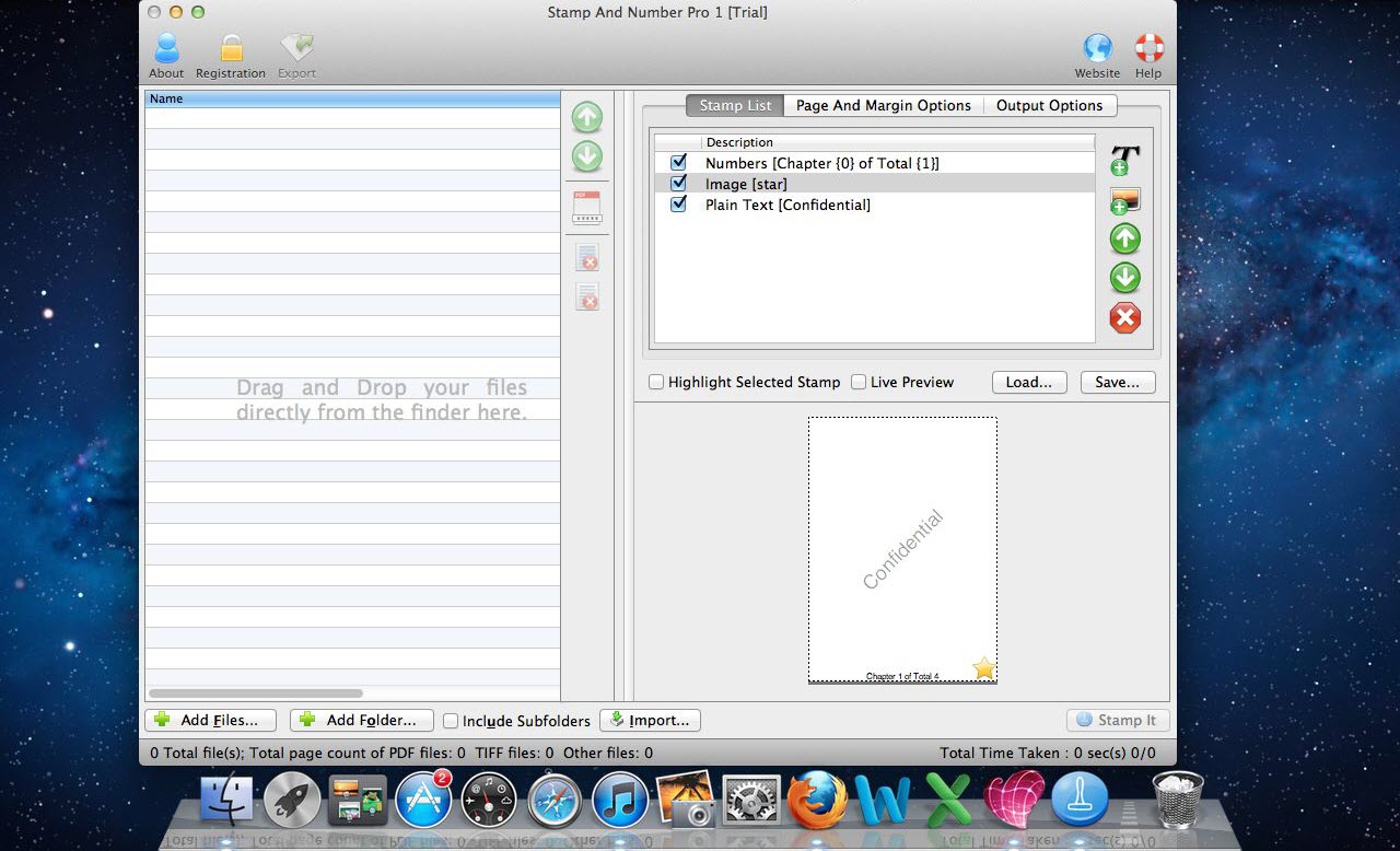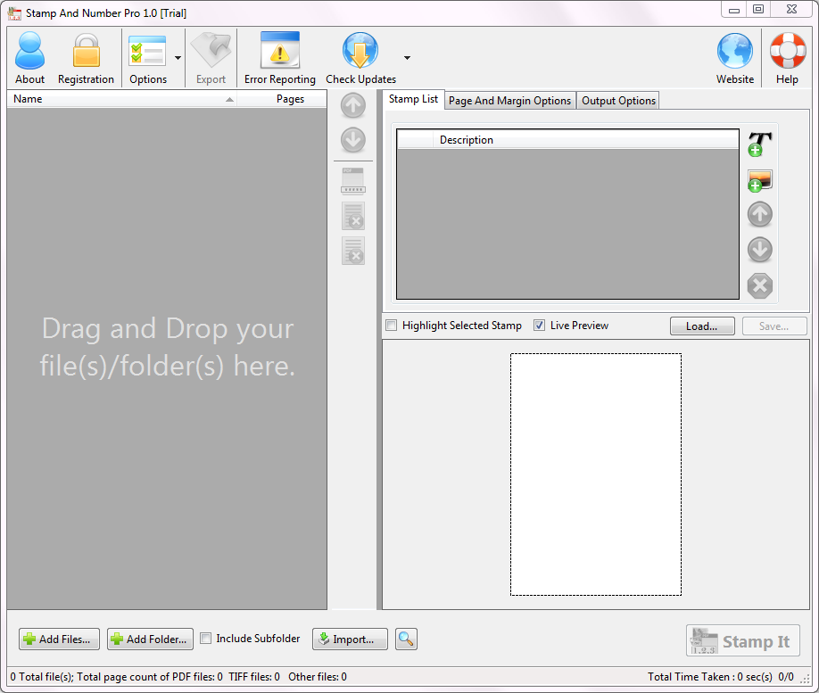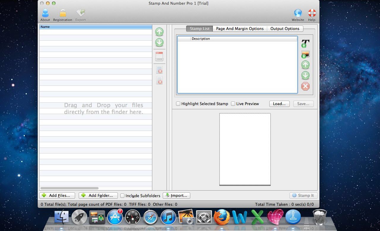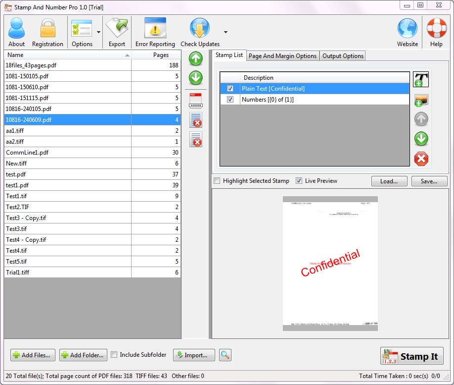 - The application offers 9 different options for alignment of stamps and page numbers in the files.